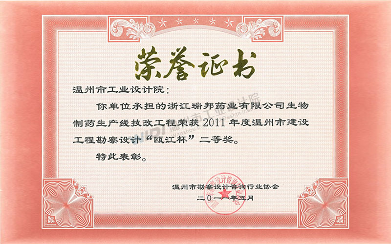 浙江瑞邦藥業(yè)有限公司生物制藥生產(chǎn)線(xiàn)技改工程設(shè)計(jì) 甌江杯二等獎(jiǎng)