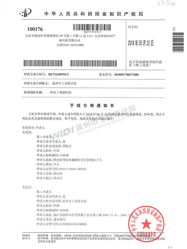 一種化工桶放料架證書